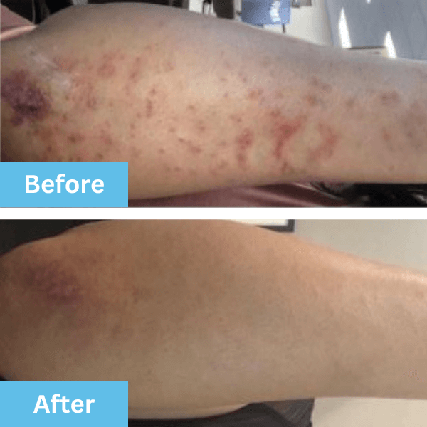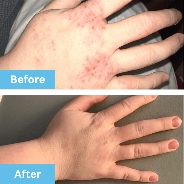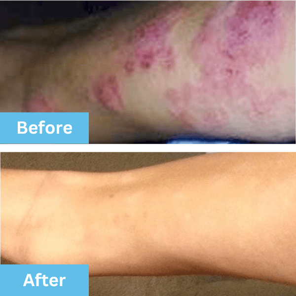 This formula is not made to cure any skin condition. It’s made to provide a unique blend of ingredients that are shown to help moisturize dry skin.